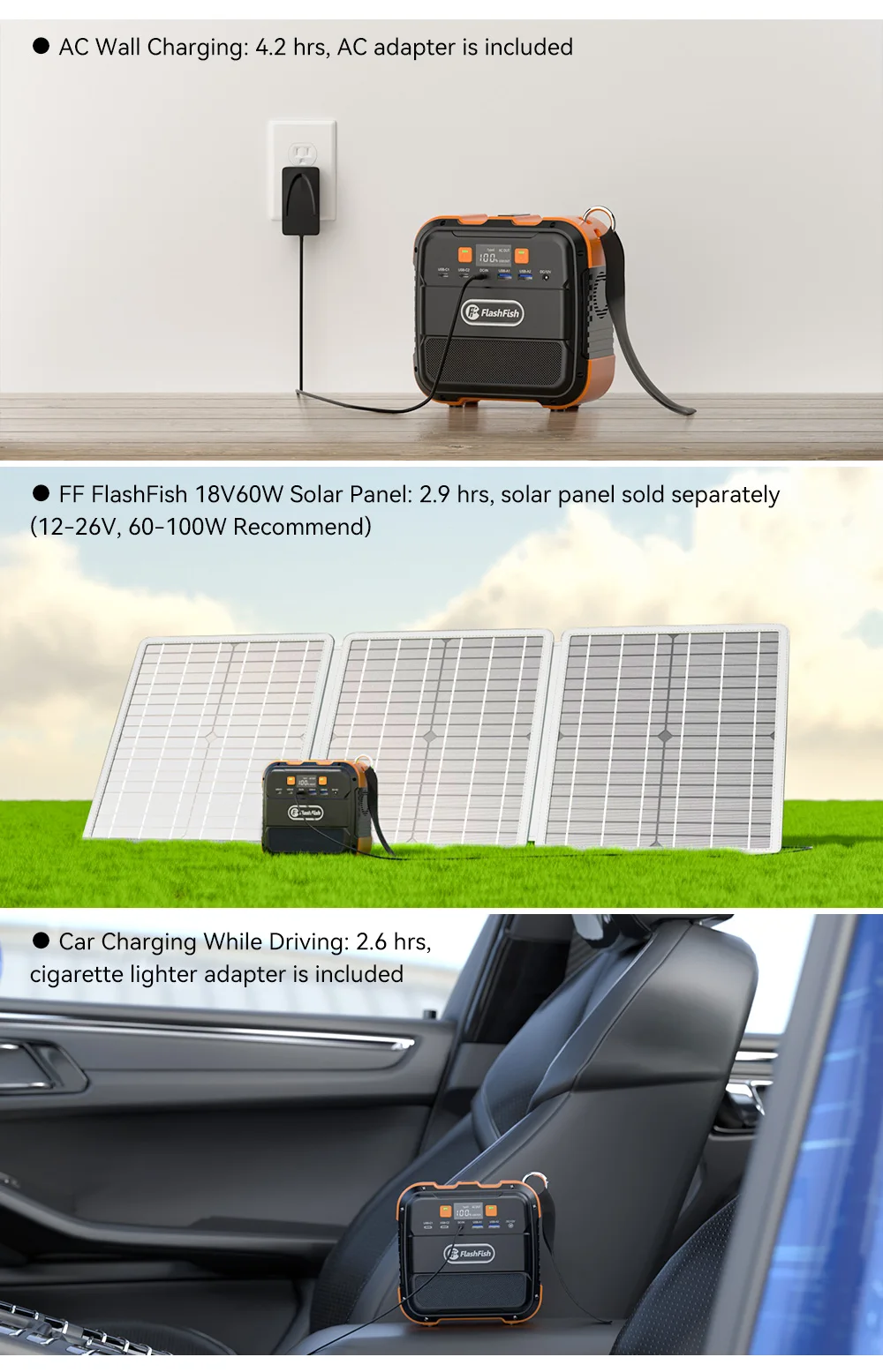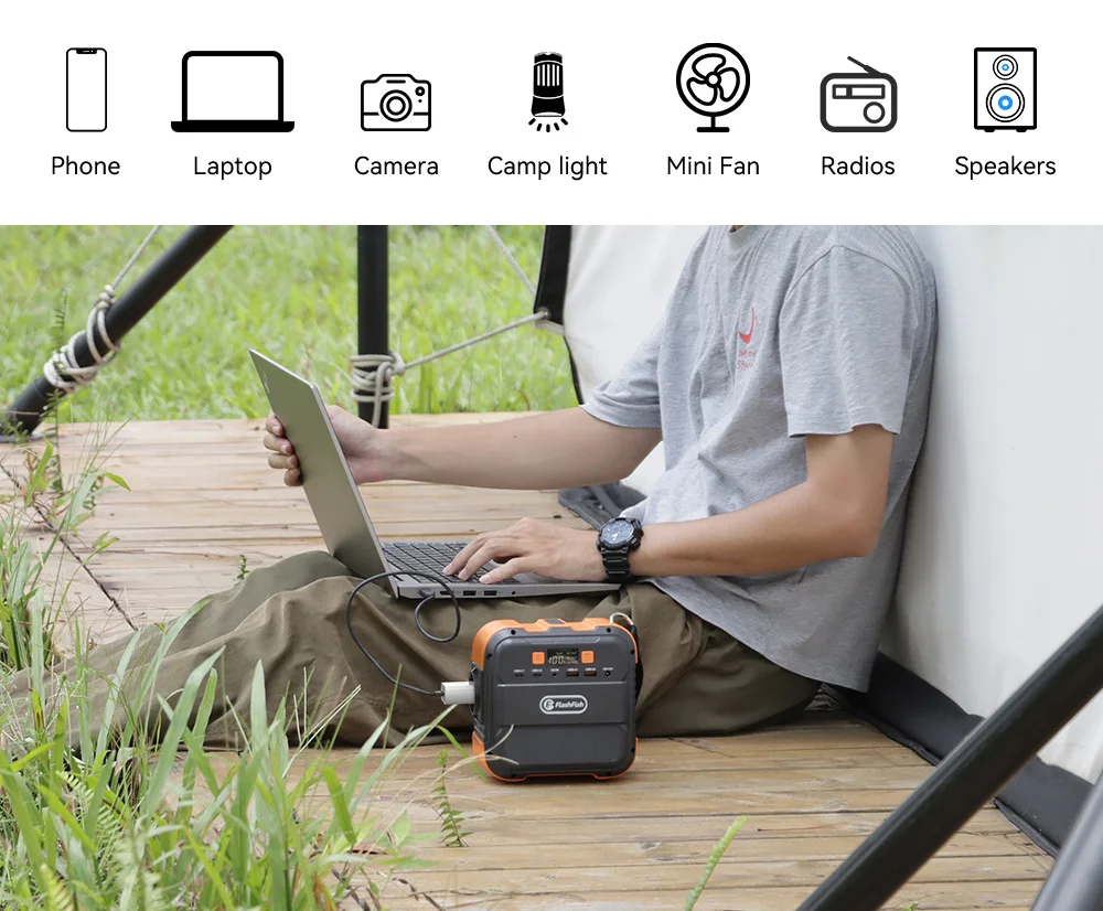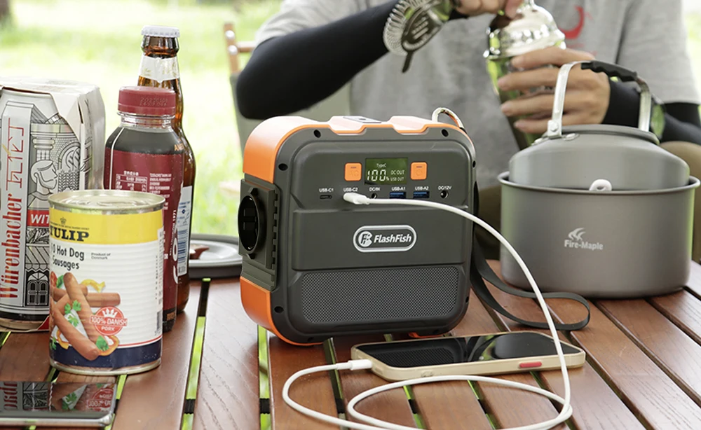 5W LED-lamp met 2 standen. De LED-lamp van de FlashFish is krachtig genoeg om een kampeerplek of stroomstoring te verlichten. De stroboscoopfunctie kan u helpen een SOS-signaal te verzenden in geval van nood. U hebt geen externe lamp nodig. Gemakkelijk afleesbaar LCD-scherm. Het LCD-scherm toont de resterende energie/laad-/ontlaadstatus/AC-uitgang/DC-uitgang/Type-C-status.